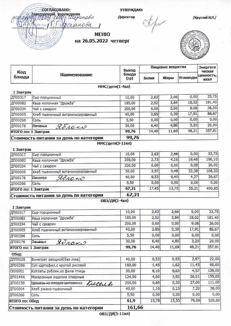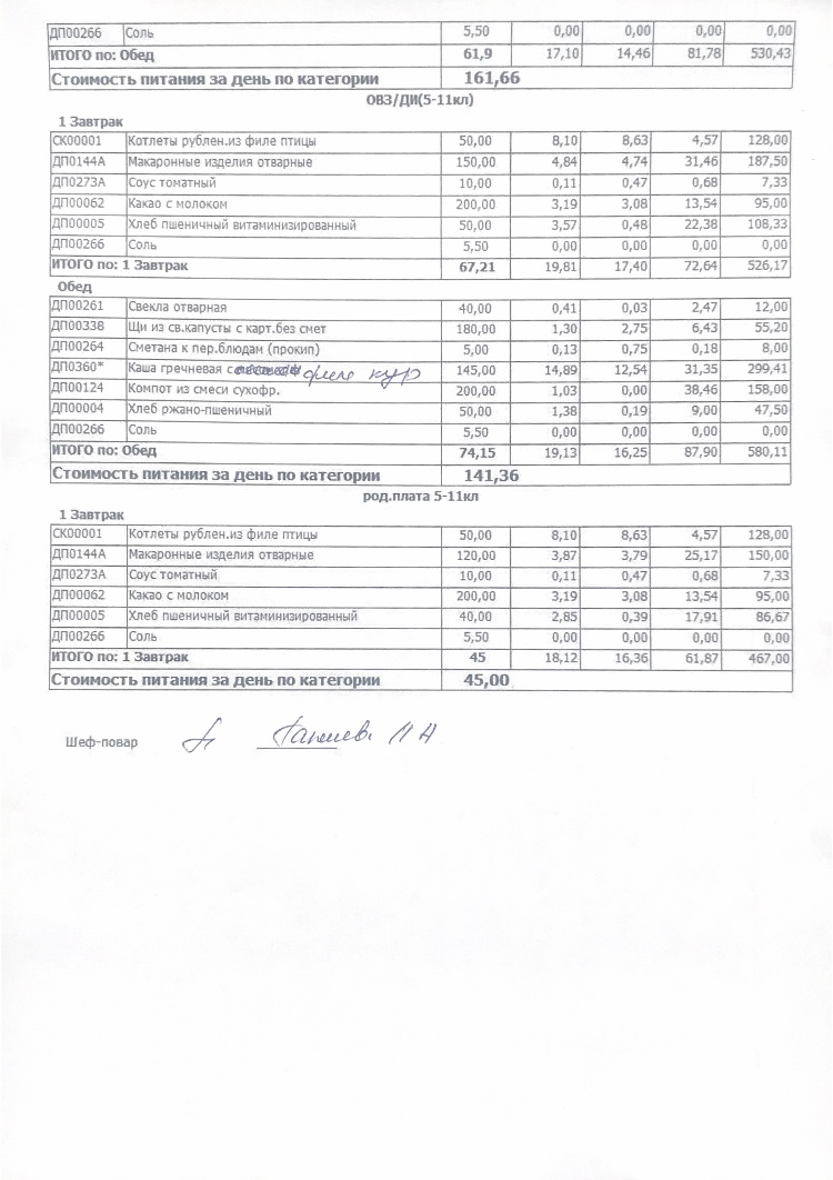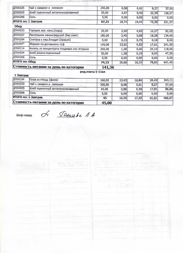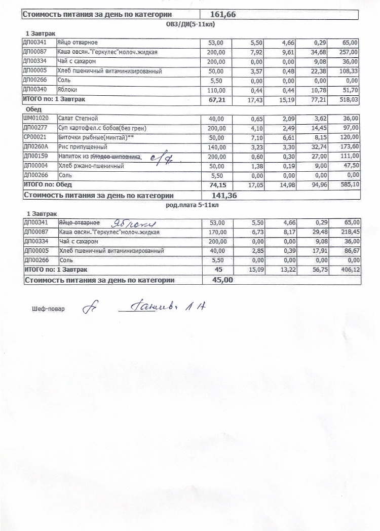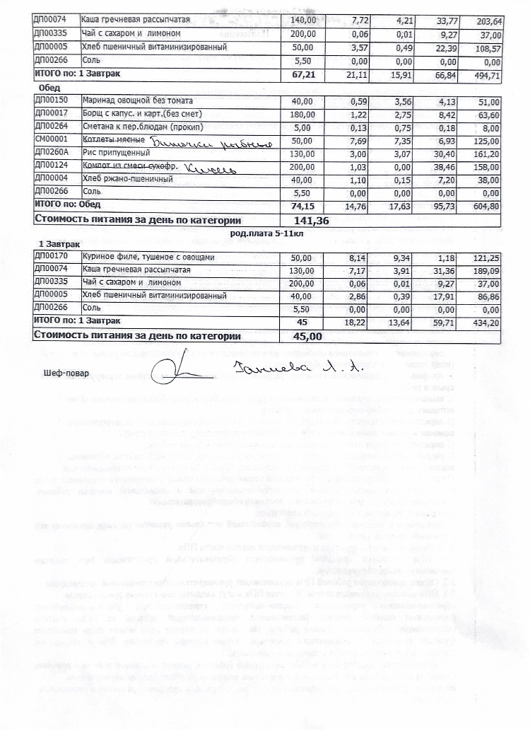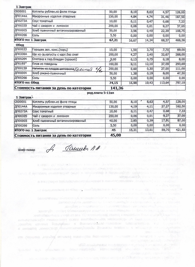 Стоимость школьного питания