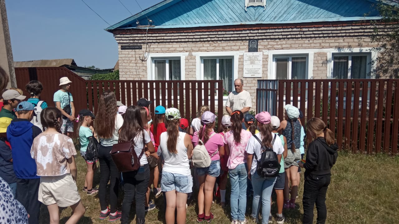 Утро в лагере началось с линейки, посвященной 80-й годовщине начала Великой Отечественной войны. После линейки ребята возложили цветы к памятнику погибшим воинам. После завтрака воспитанники лагеря поехали на экскурсию в село Ахметово.